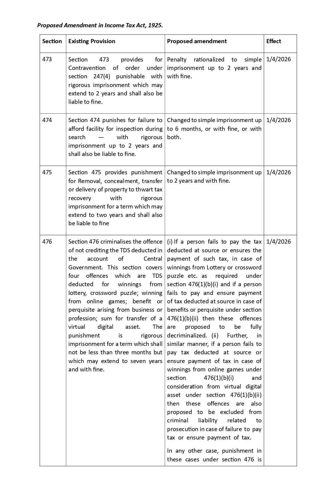 The existing prosecution proceedings and the proposed amendments in the Income Tax Act, 1961 and Income Tax Act, 2025 are as under :