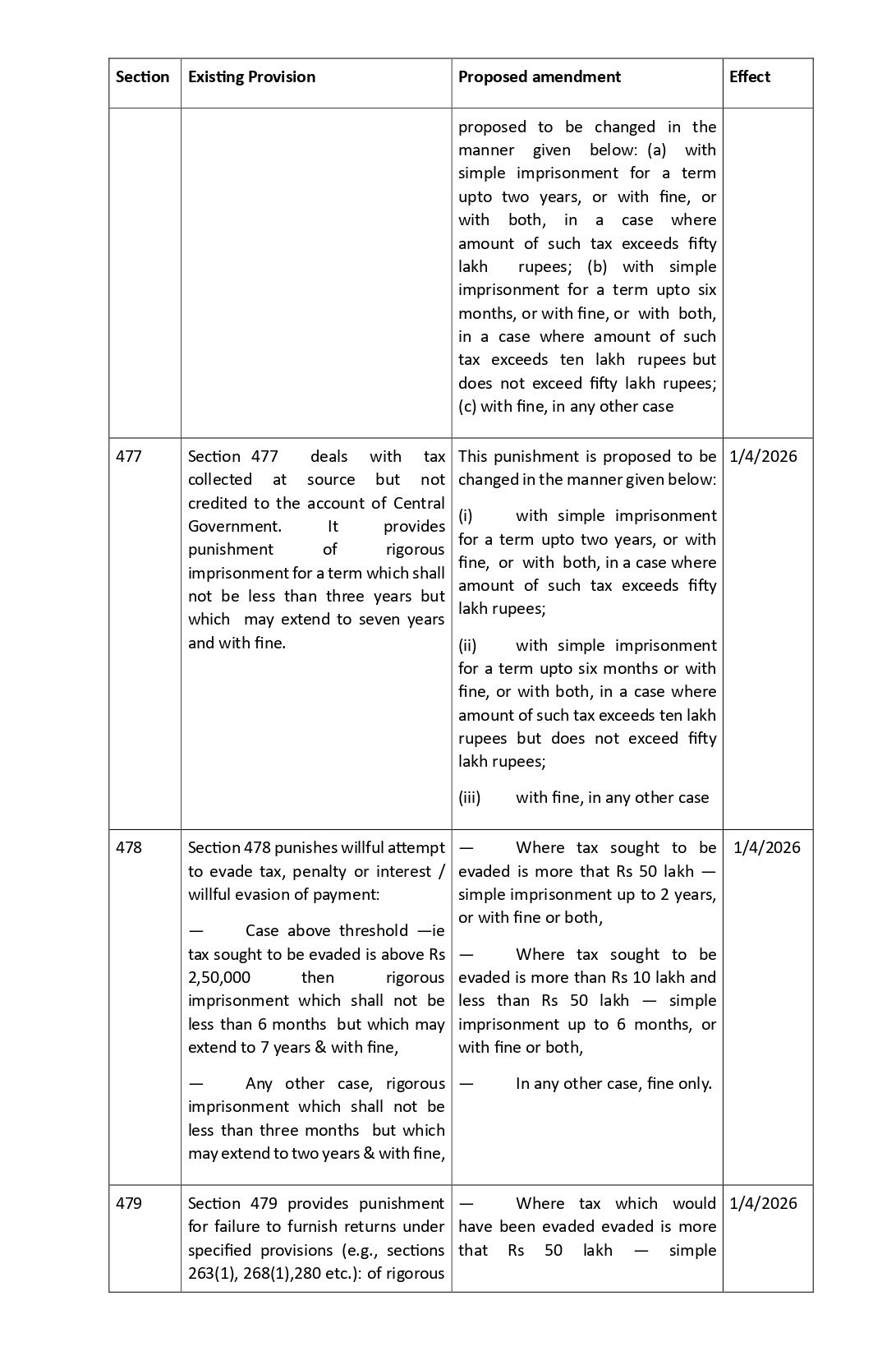 The sentencing structure is therefore rationalised and aligned with the graded punishment system introduced under the Finance Bill, 2026.